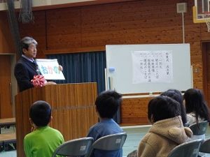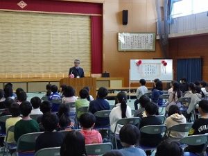 その後の始業式では、校長先生から本年度の目標についてお話がありました。「おかの」の言葉にちなんで、