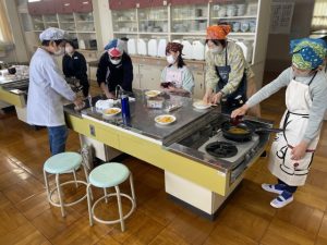 家庭科の時間に、「いりたまご」づくりに取り組みました。たまごに牛乳と塩こしょうを加え、火加減に気をつけながら、ふんわりとした仕上がりを目指して調理しました。どの児童も手順を守りながら丁寧に取り組み、おいしいいりたまごができあがりました。自分で作った料理をうれしそうに味わう姿が印象的でした。