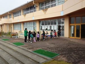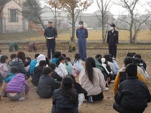 訓練では、火災発生時の身の守り方や避難の際の注意点を意識しながら行動し、児童・園児全員が落ち着いて避難することができました。