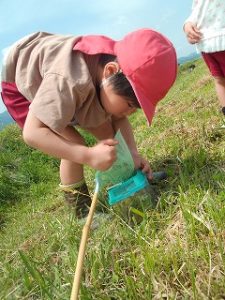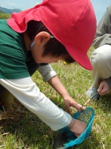 生き物探しが大好きな子どもたち。岡野幼稚園周辺には、生き物探しに最適な場所がたくさんあり、毎日生き物探しの冒険に出かけています!