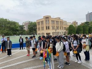 今日は朝早くから子どもたちを送り届けていただき、ありがとうございました。広島に無事到着した6年生は、原爆ドームや平和記念資料館を見学したり、戦争体験についてお話を聞いたりしました。