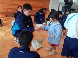 篠山産業高校との交流もたくさんあって、野球をしたり、おもちゃを作って来てくれたり、栄養素について教えてもらったりしました。篠山産業高校へ授業体験へも行きました。
